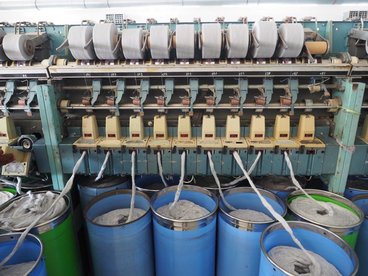 En nuestro viaje, visitamos una de las plantas de Sri Vari Yarns donde ocurre de nuevo la magia, en este caso retales de camisetas se convierten de nuevo en “algodón”. Separados los retales sobrantes de la fabricación de las prendas por colores, estas entran en un proceso de triturado para luego mezclarse el algodón reciclado con el poliéster para hacer los hilos de las bolsas.